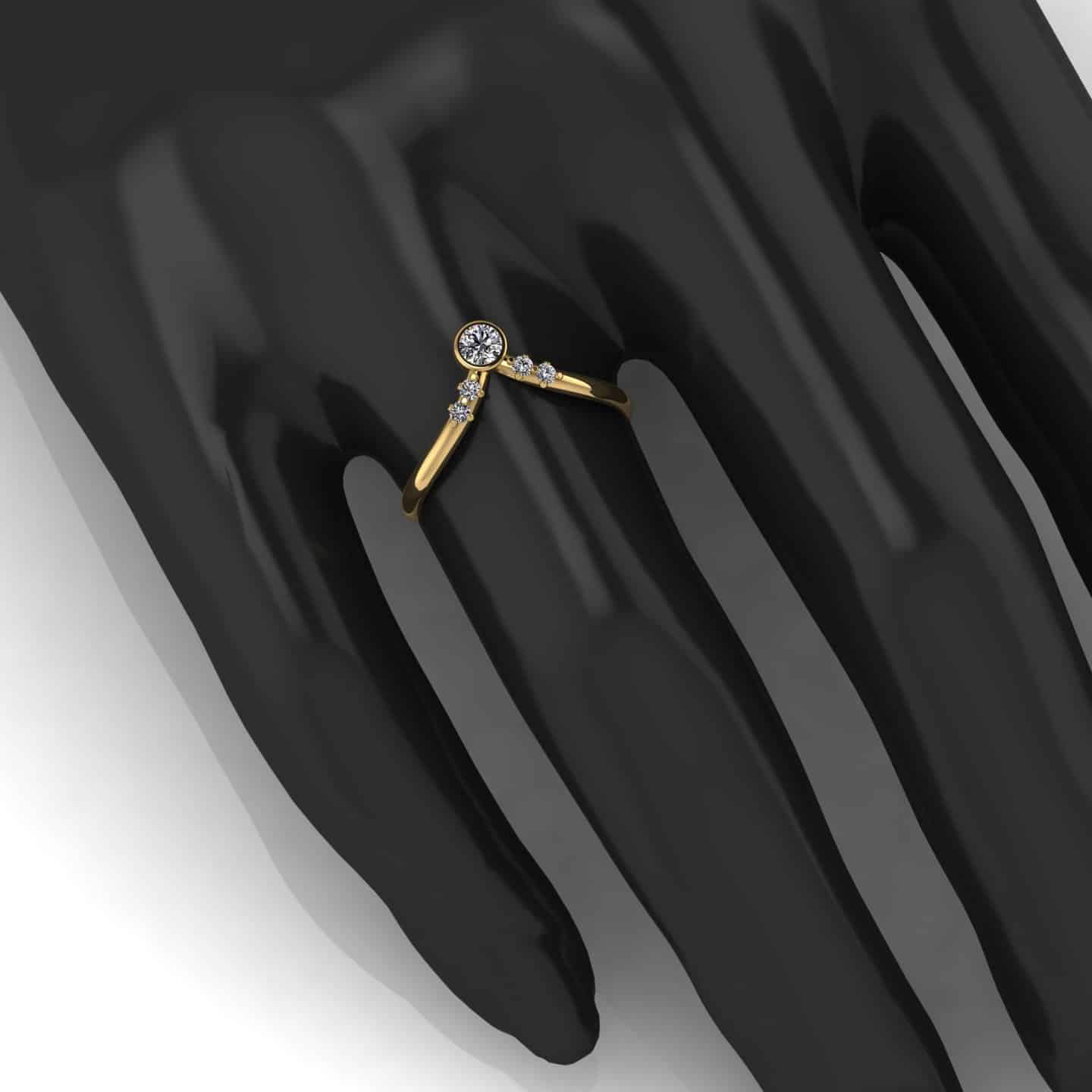 Inel aur galben 18K cu diamante per un total de 0.20 CT, culoare F, taietura brilliant, claritate VVS.