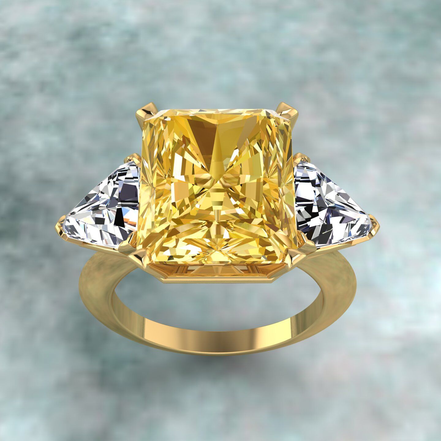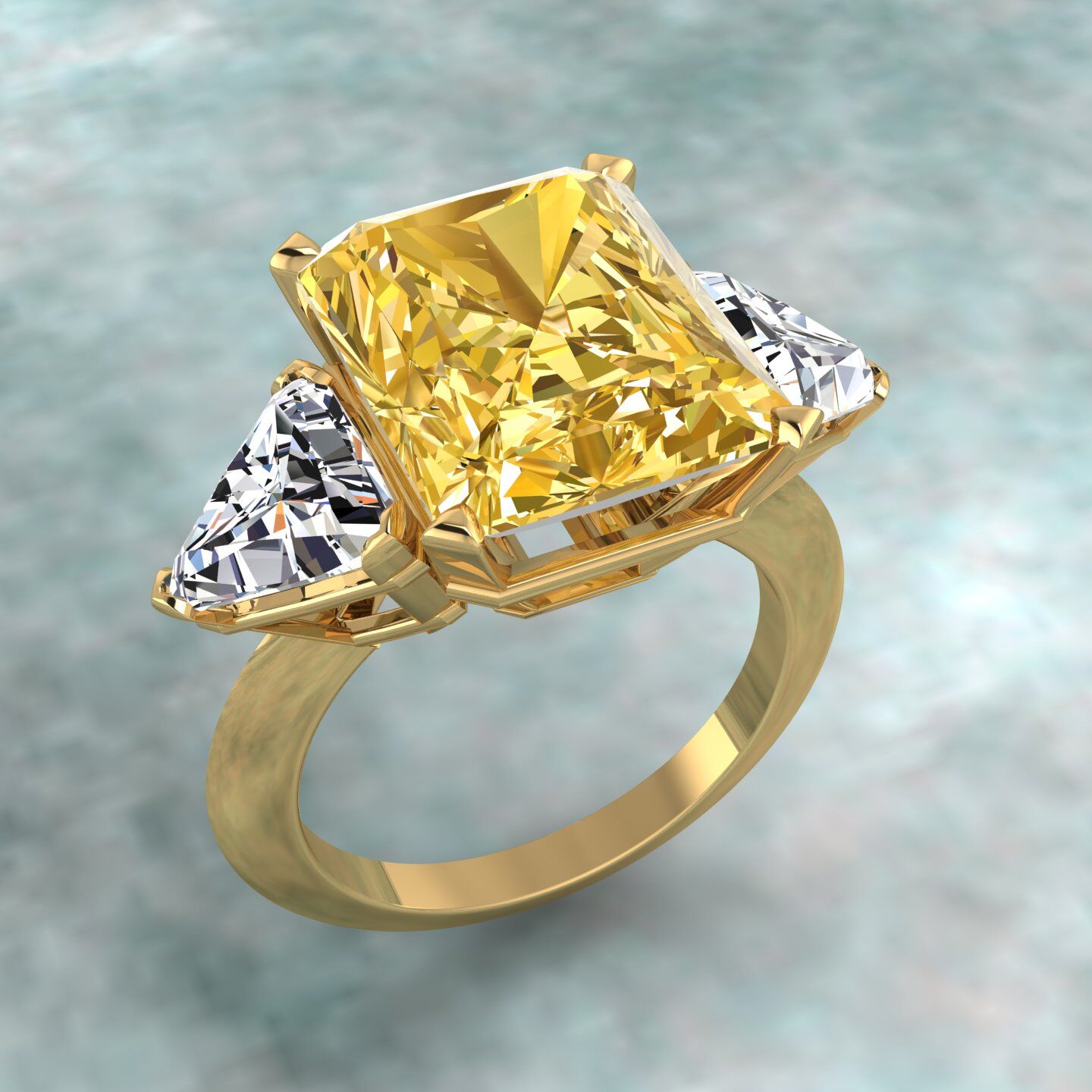 Inel aur galben 18 K cu safir galben 5 CT, taietura Radiant si safire albe, taietura Trillion per un total de 2.3 Ct