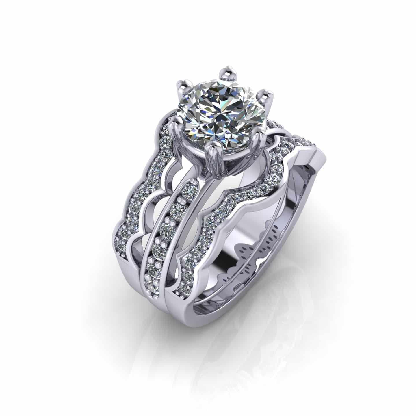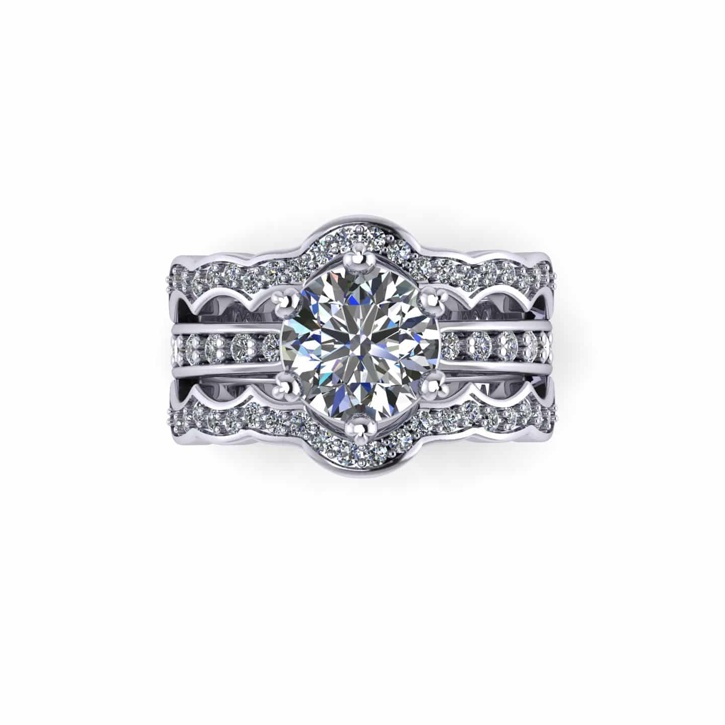 Inel de logodna, realizat in aur alb de 18 K cu piatra centrala diamant 1,50 CT, culoare F, VVS si pavè de diamante per un total de 0.50 CT.