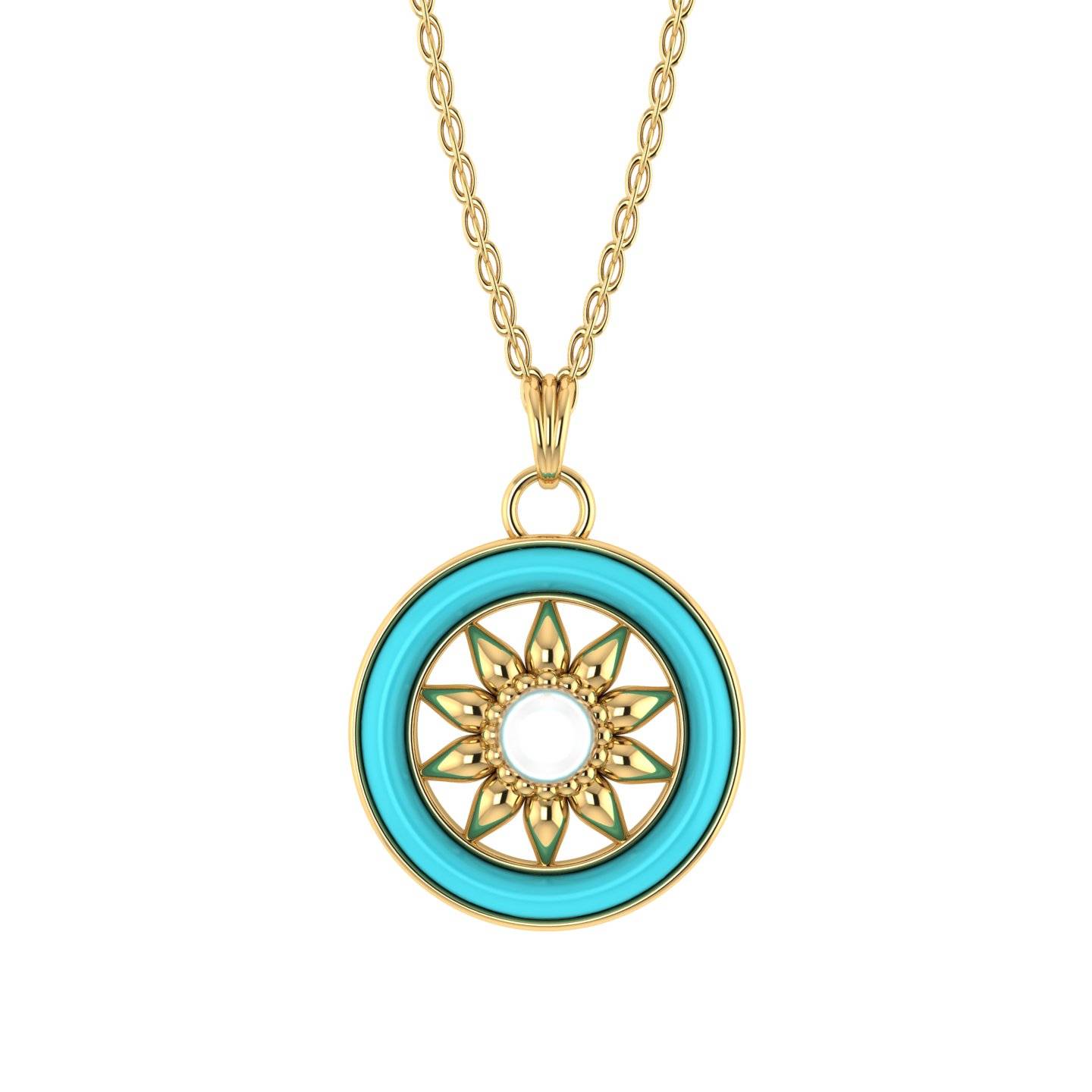 Pandantiv cu lant argint 925, placat cu aur 18 K, perla naturala si email in culori vibrante.