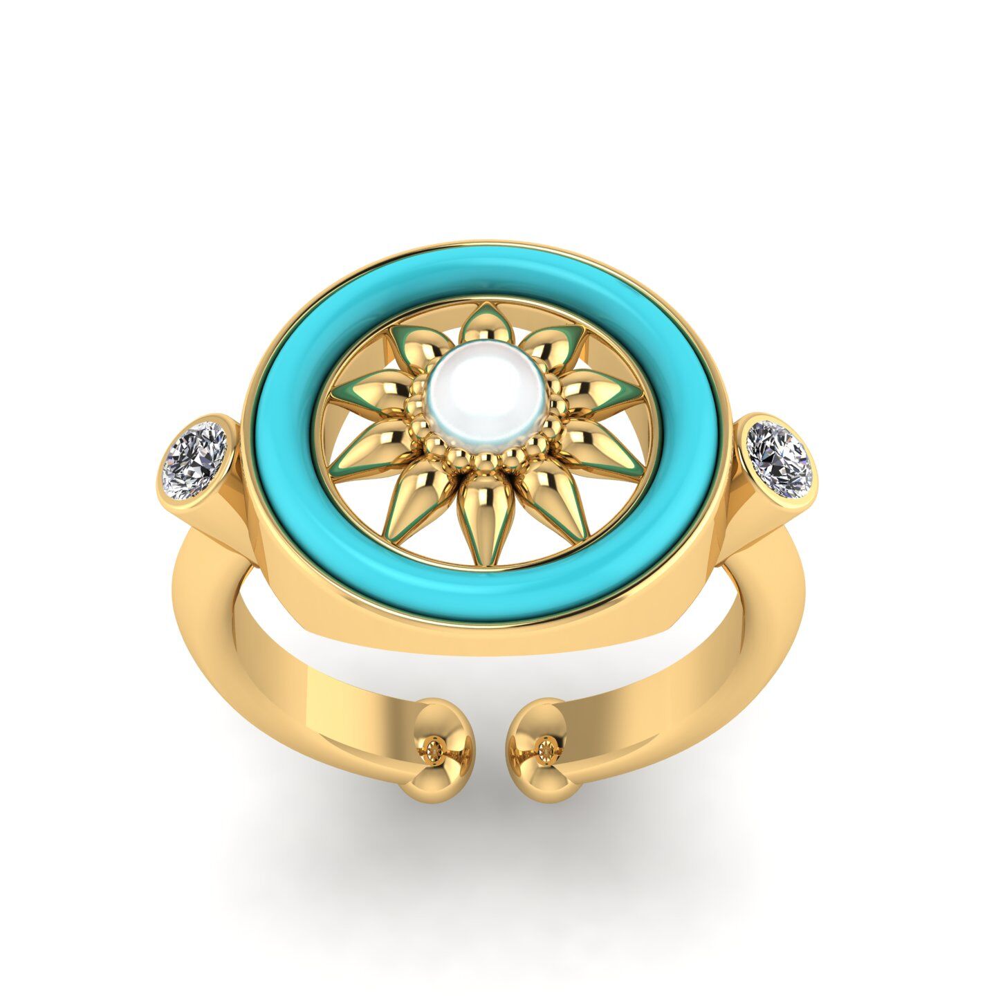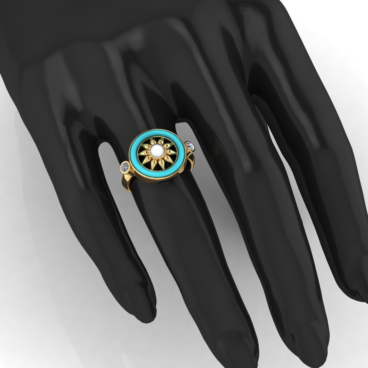 Inel argint 925 placat cu aur 18 K, perla naturala alba si email in nuante vibrante.