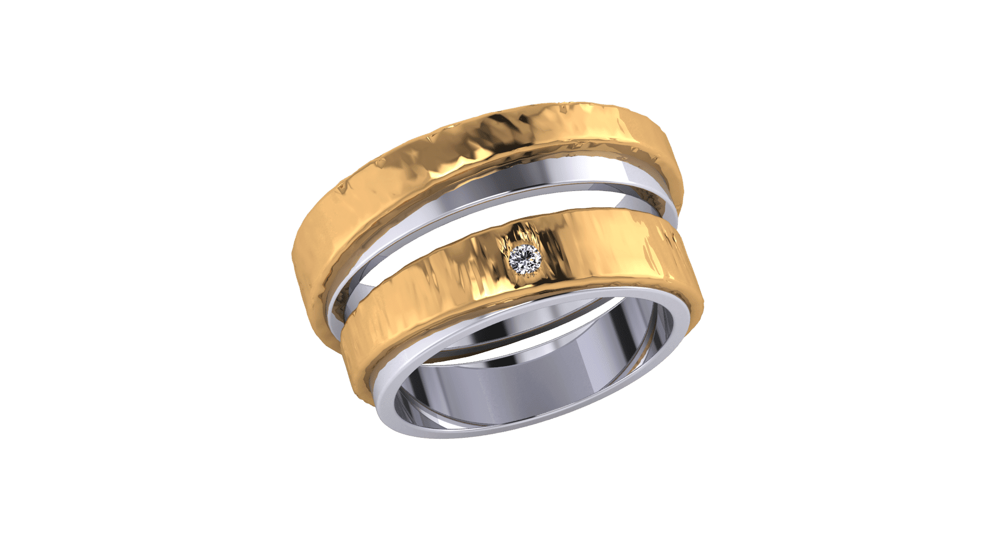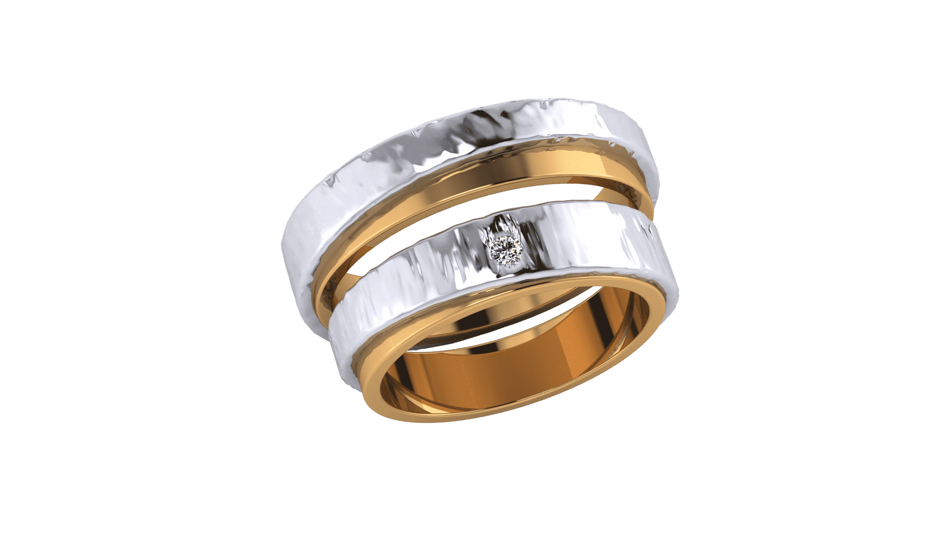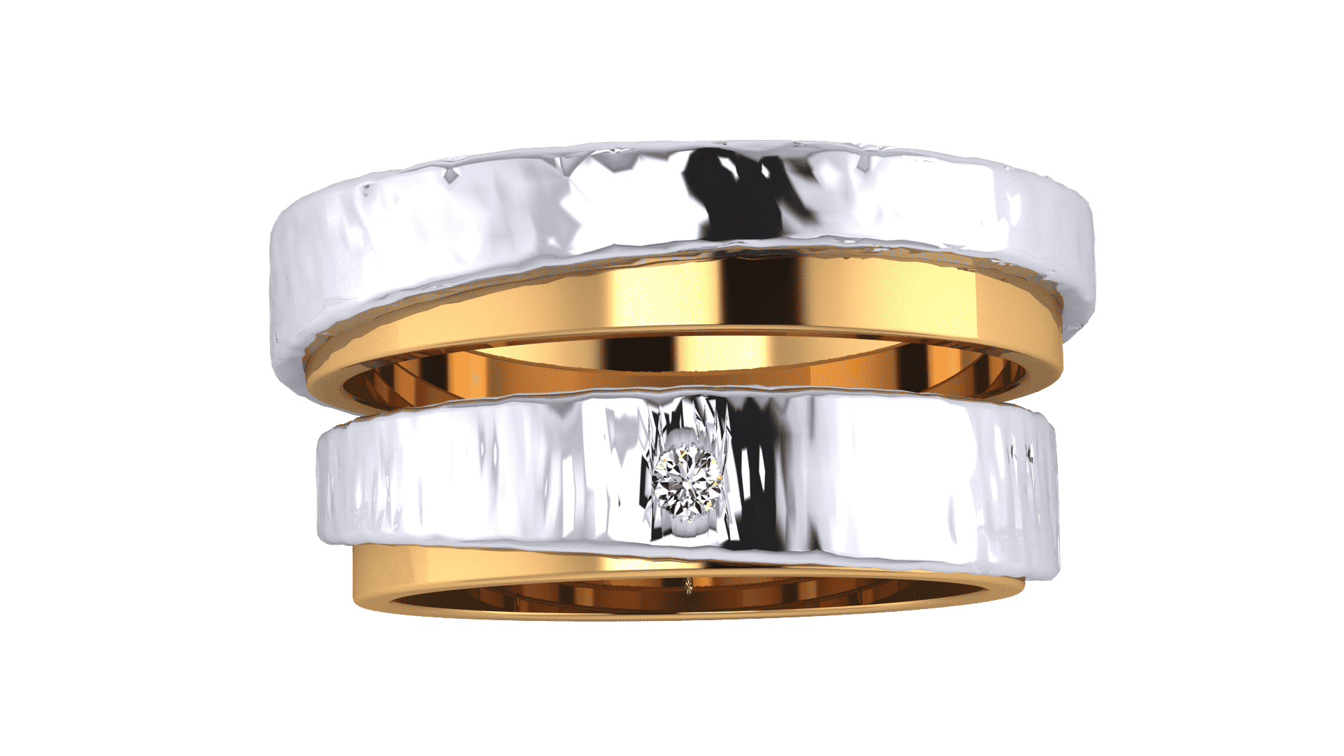Verighete aur alb si galben de 14K cu safir de 0.30 ct