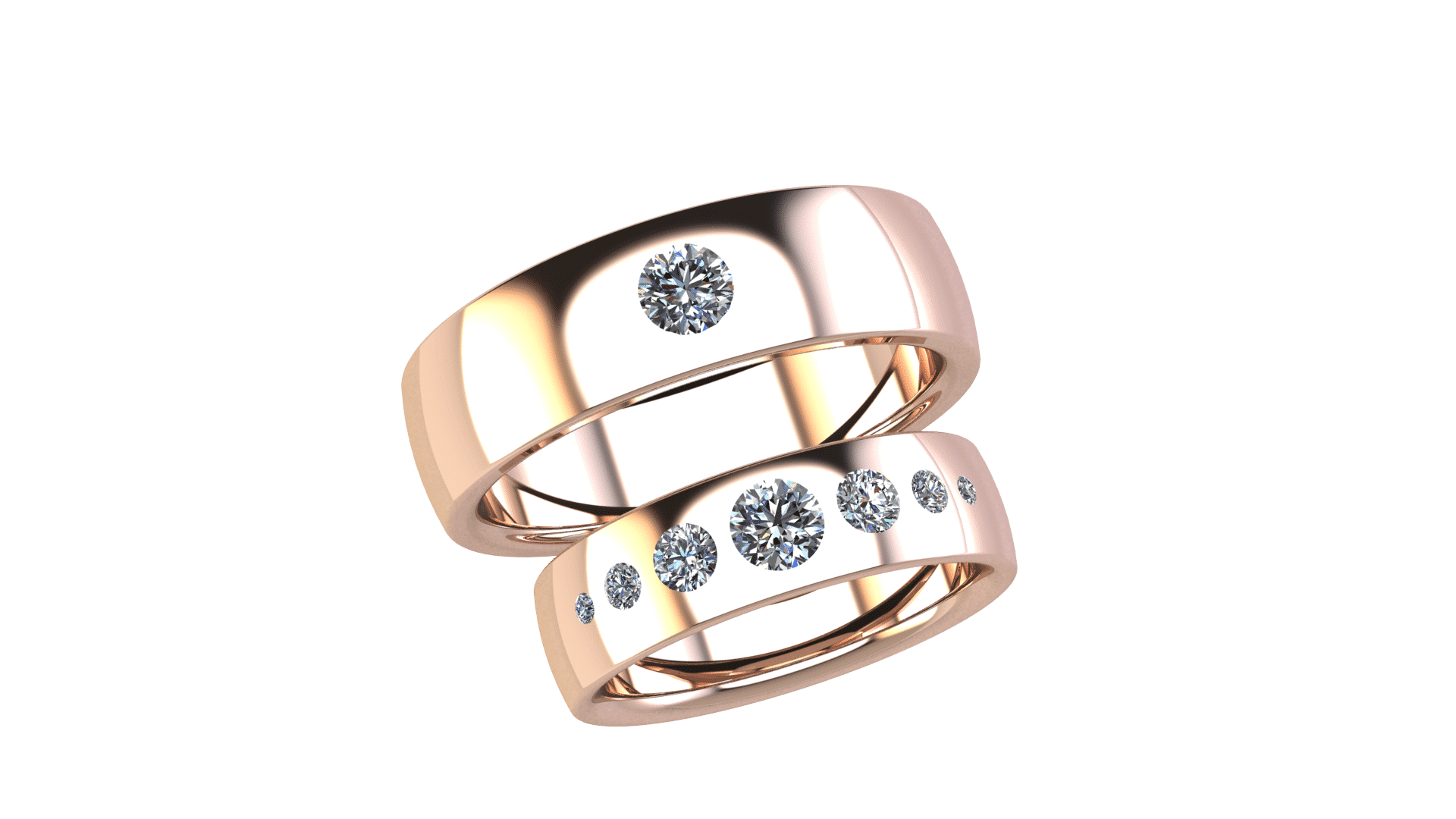 Verighete din aur de 14-18K cu safire albe, termodifuze, taietura brilliant sau diamante 0.43 CT, culoare F, VS, taietura brilliant.