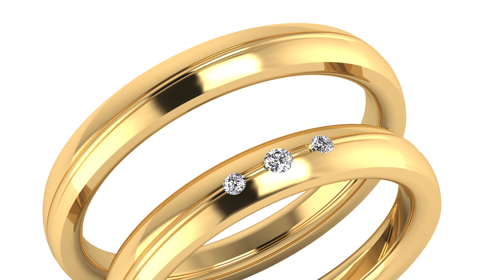 Verighete din aur de 14-18K cu safire albe, termodifuze, taietura brilliant sau diamante 0.20 CT, culoare F, VS, taietura brilliant.