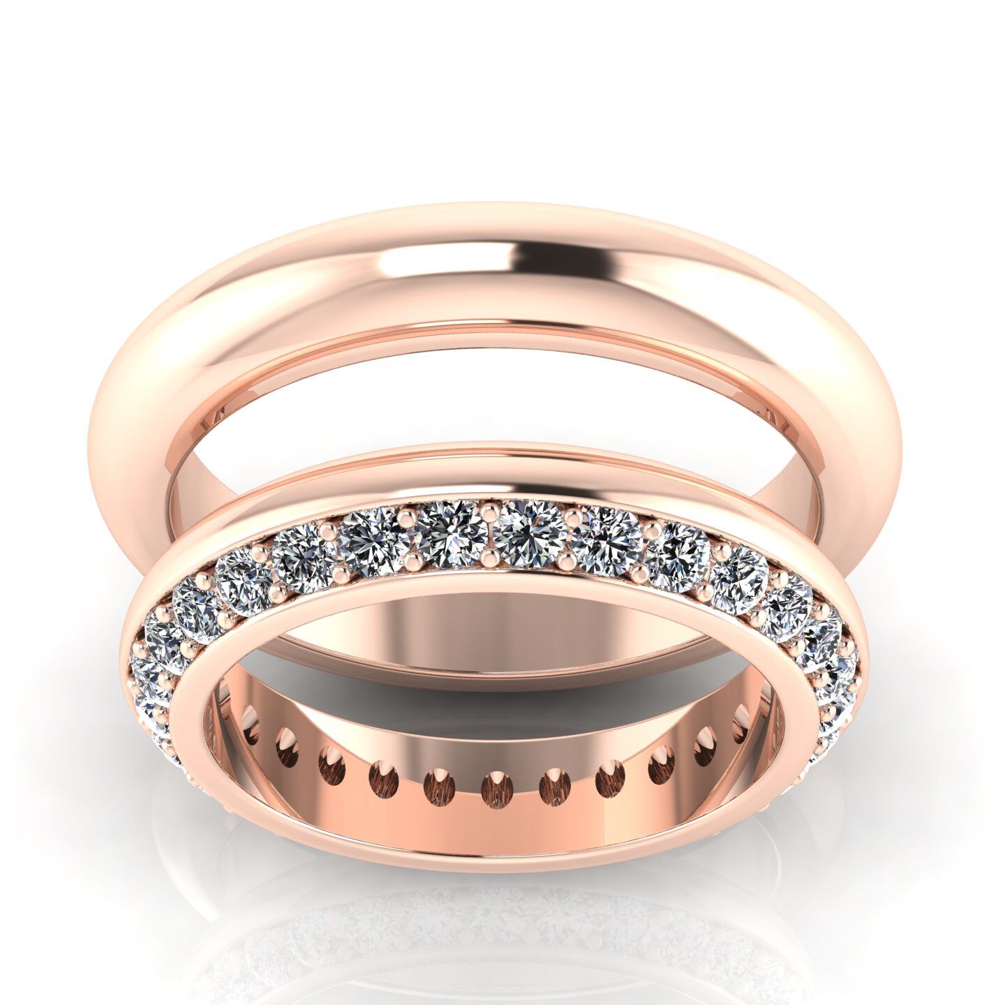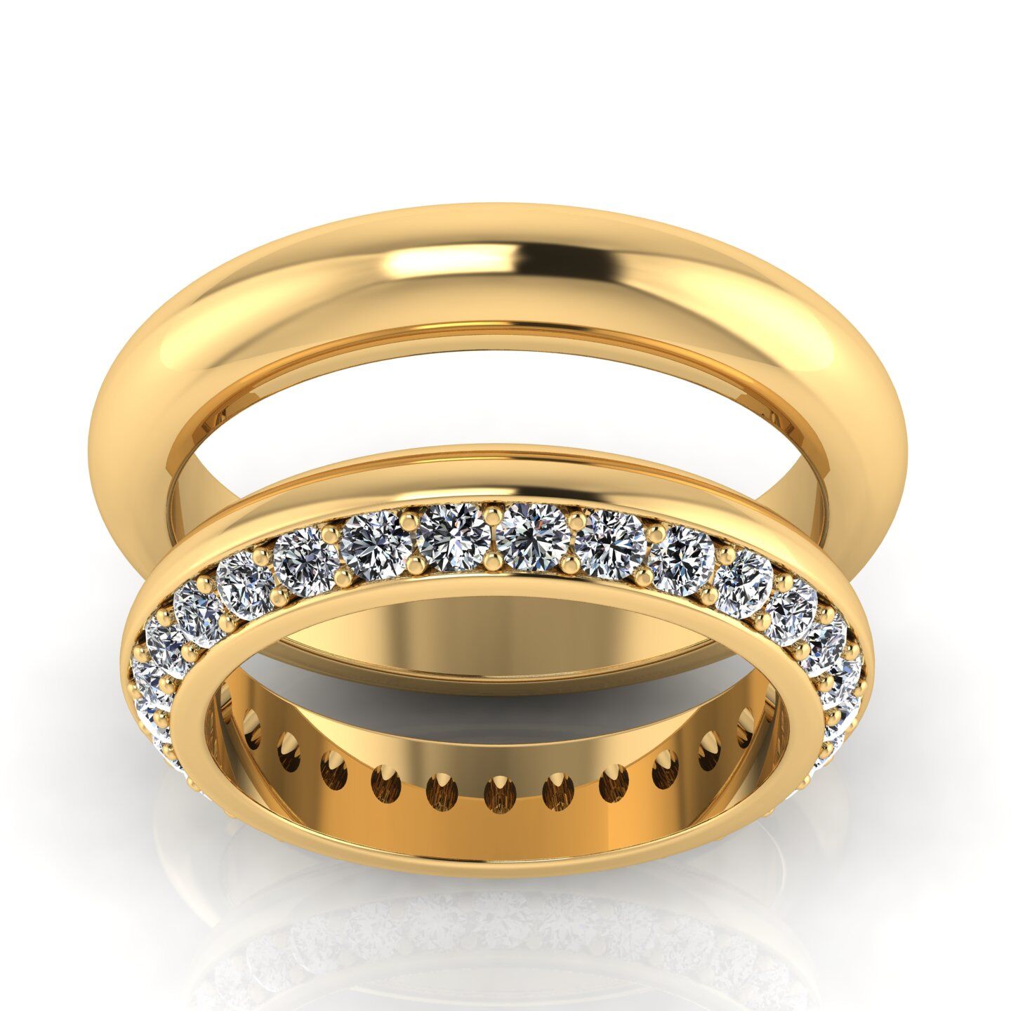 Verighete din aur de 14-18K cu safire albe, termodifuze, taietura brilliant sau diamante 1 CT, culoare F, VS, taietura brilliant.